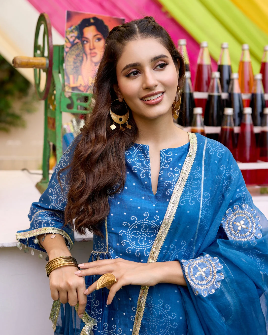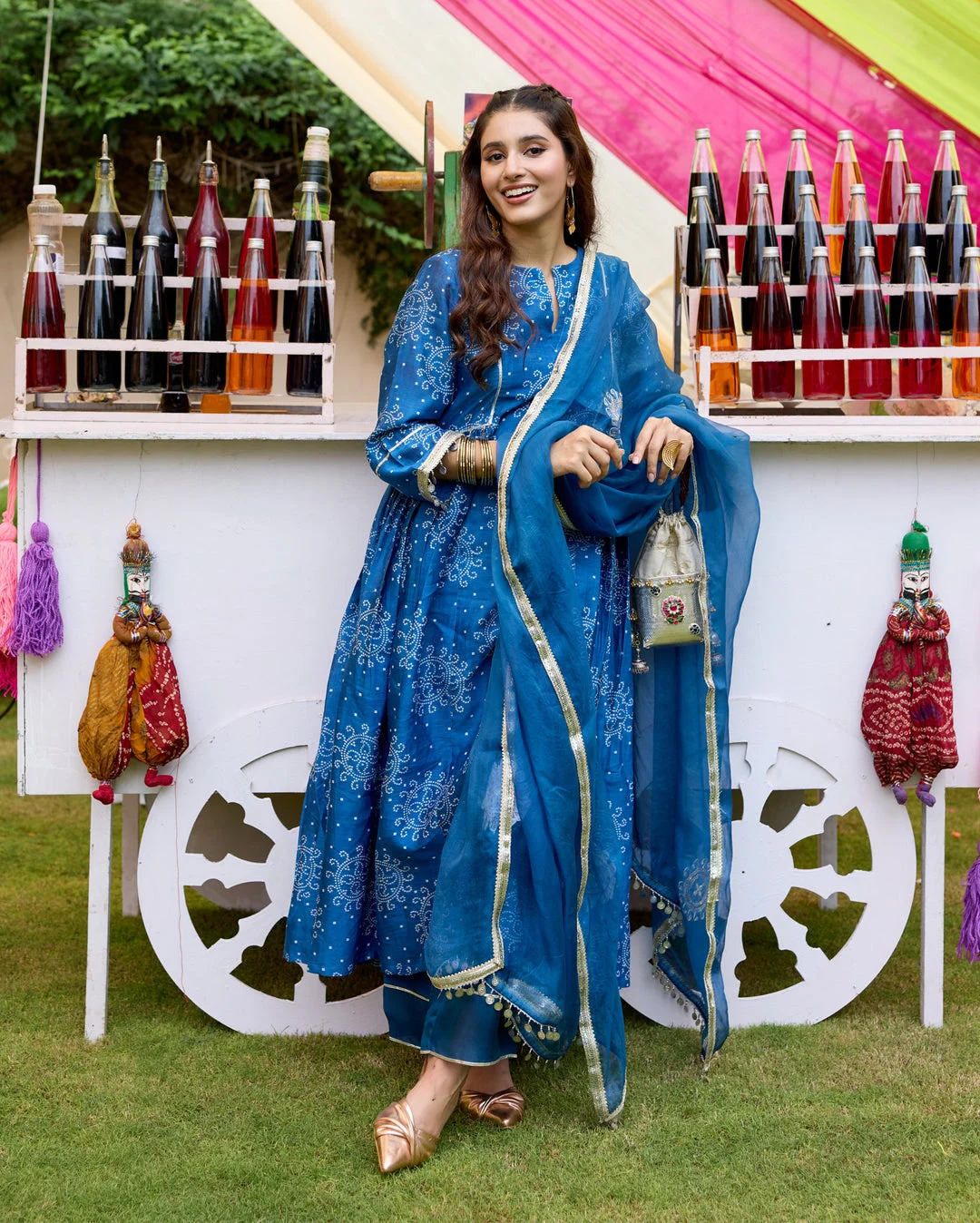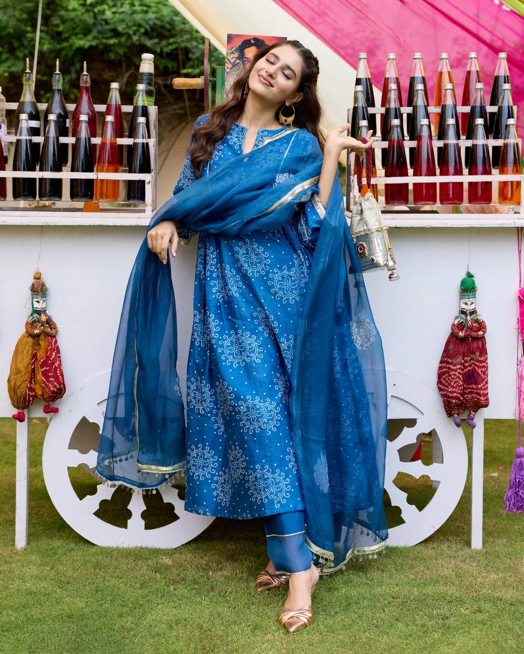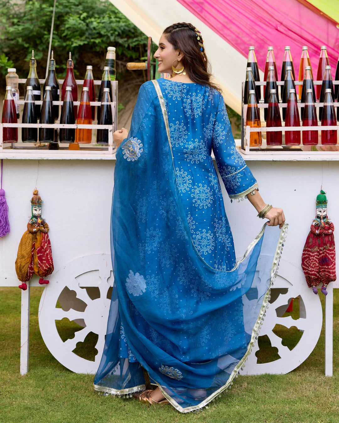 AROGYA BLUE BANDHANI CHANDERI SUIT SET