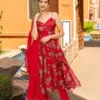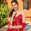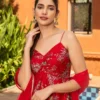 Set the stage on fire with the Dahr Chanderi Suit Set in a fiery shade of red, featuring a flared anarkali and pants that exude charm and elegance. Perfect for weddings and festive celebrations, this ensemble is a delightful combination of comfort and style, allowing you to dance, celebrate, and make unforgettable memories with effortless grace.