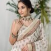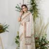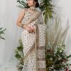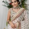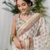 GOLBAHAAR WHITE PRINTED CHANDERI SILK SAREE