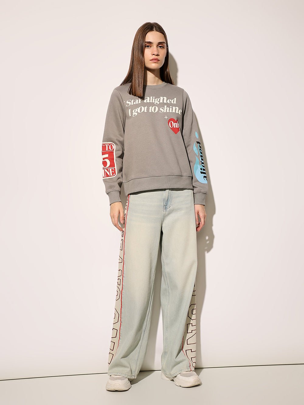 Stay comfy, stay cool. This women’s grey printed sweatshirt from SOHO BOUTIQUE is your go-to for laid-back vibes — featuring a fun print, round neckline, drop shoulders, and long sleeves. Brushed on the inside for that extra cozy feel.