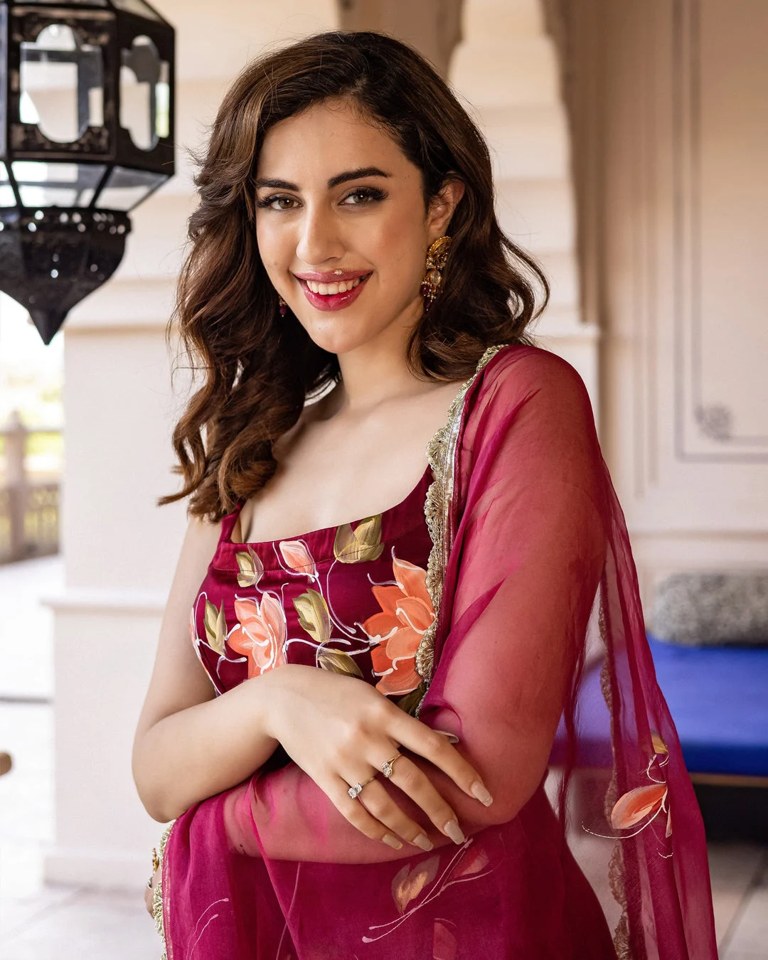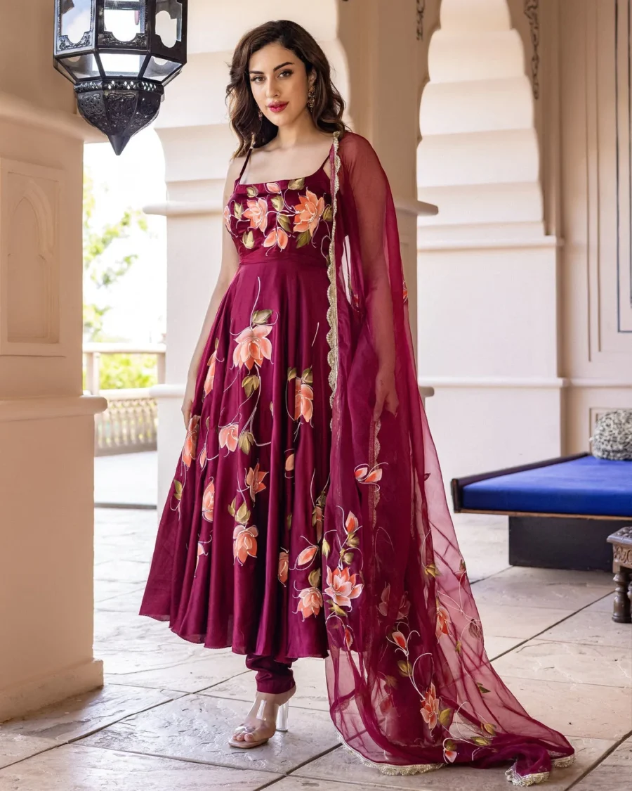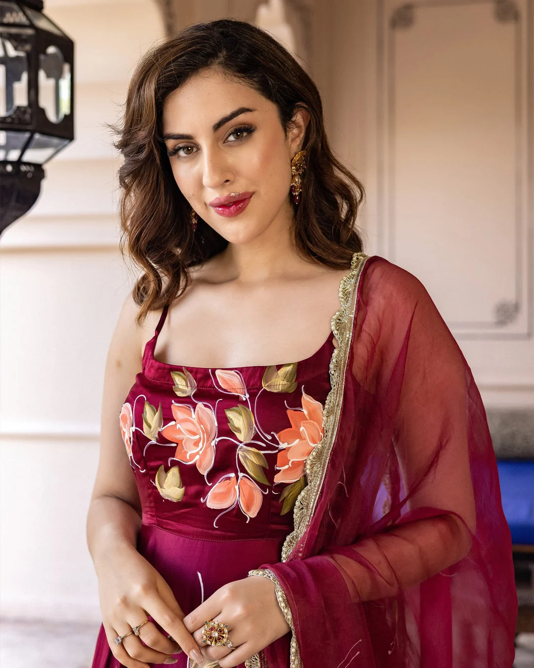 The Grouna Handpainted Suit Set is exclusively made in the hottest colour of the season- the red wine hues of magic; thus, making this outfit a perfect one to be adorned at all get-togethers and soirees.