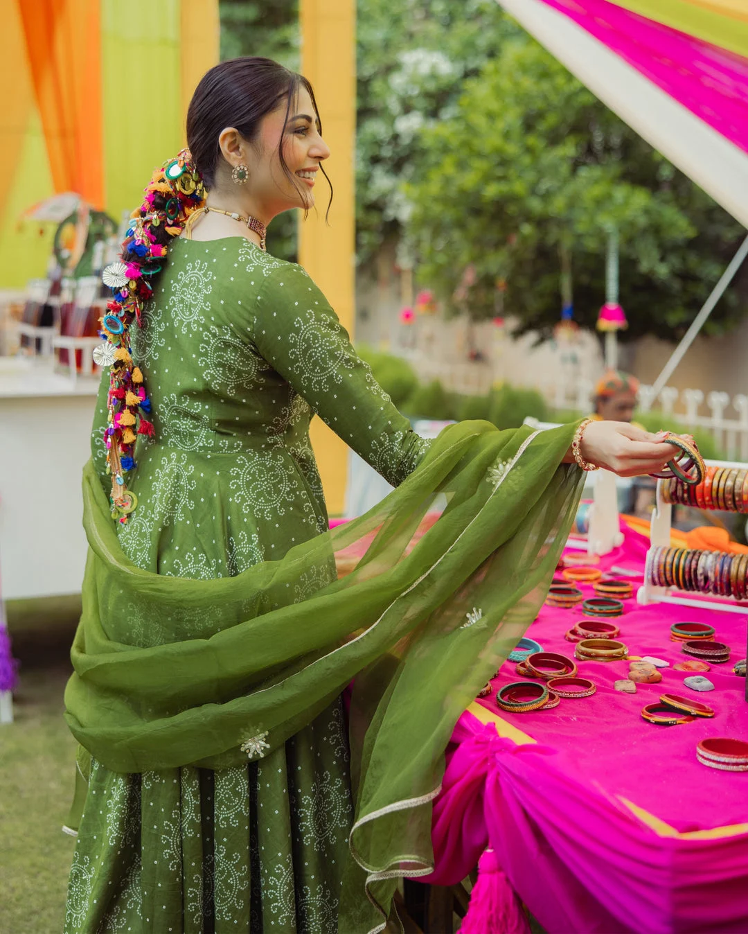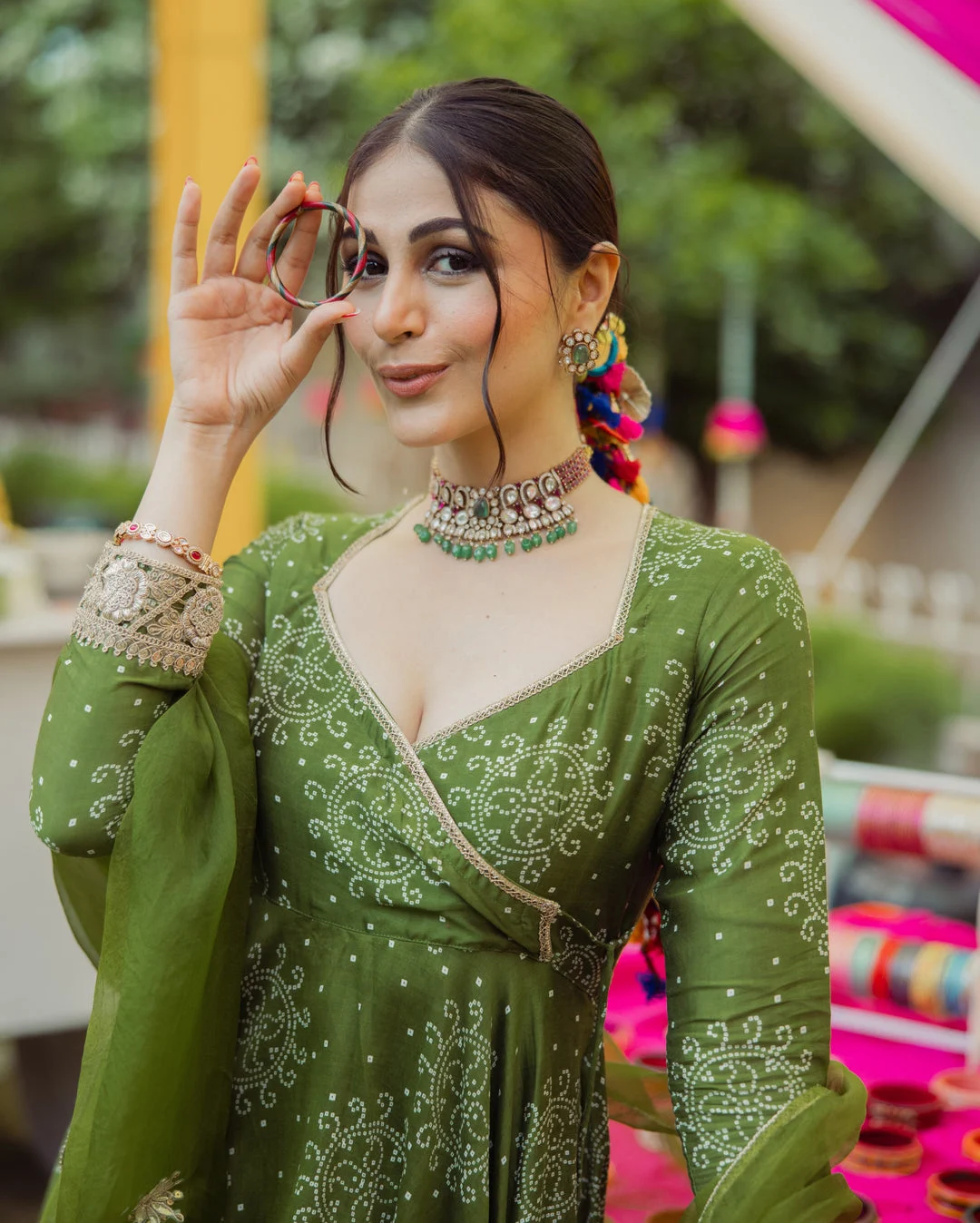 Katha Green Bandhani Chanderi Suit Set