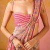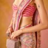 Delicately detailed and oh-so-chic, this tiny peach blouse features lace appliqué all over, adding a feminine touch to its sleek design. The tie-up back adds a playful, yet bold element, making this blouse perfect for pairing with sarees, skirts, or lehengas. A must-have for the modern woman, this blouse effortlessly blends elegance with a flirty edge, ideal for festive and wedding celebrations.