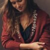 PILCRO CRYSTAL V-NECK CARDIGAN SWEATER