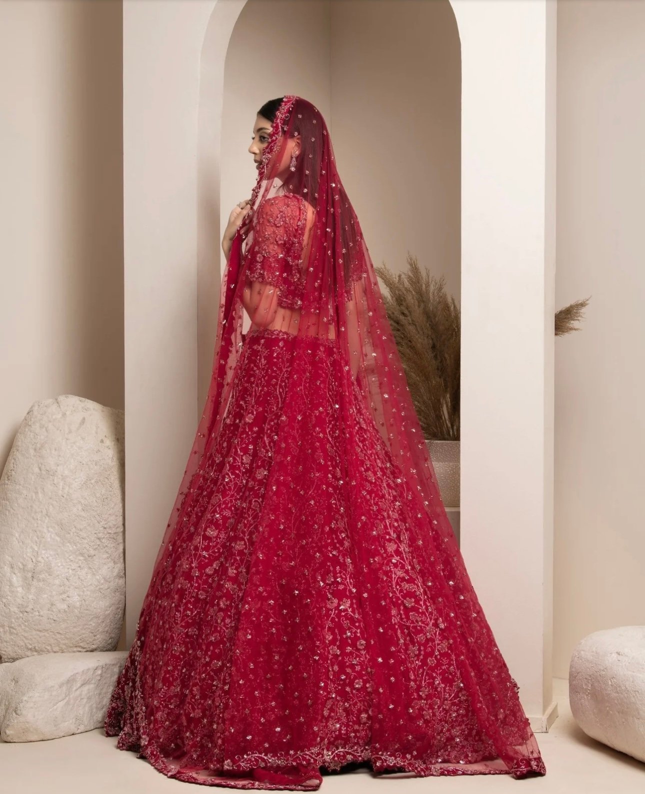 RASPBERRY RED BRIDAL LEHENGA SET