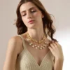 The Selket Necklace evokes the quiet drama of moonlit waters. A composition of smooth gold-toned chain and clustered pearls, this necklace plays with volume and softness in perfect harmony. The lobster clasp completes the design with ease and polish..