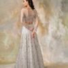 SILVER CRYSTAL AND SEQUIN EMBELLISHED SILK ORGANZA LEHENGA SET