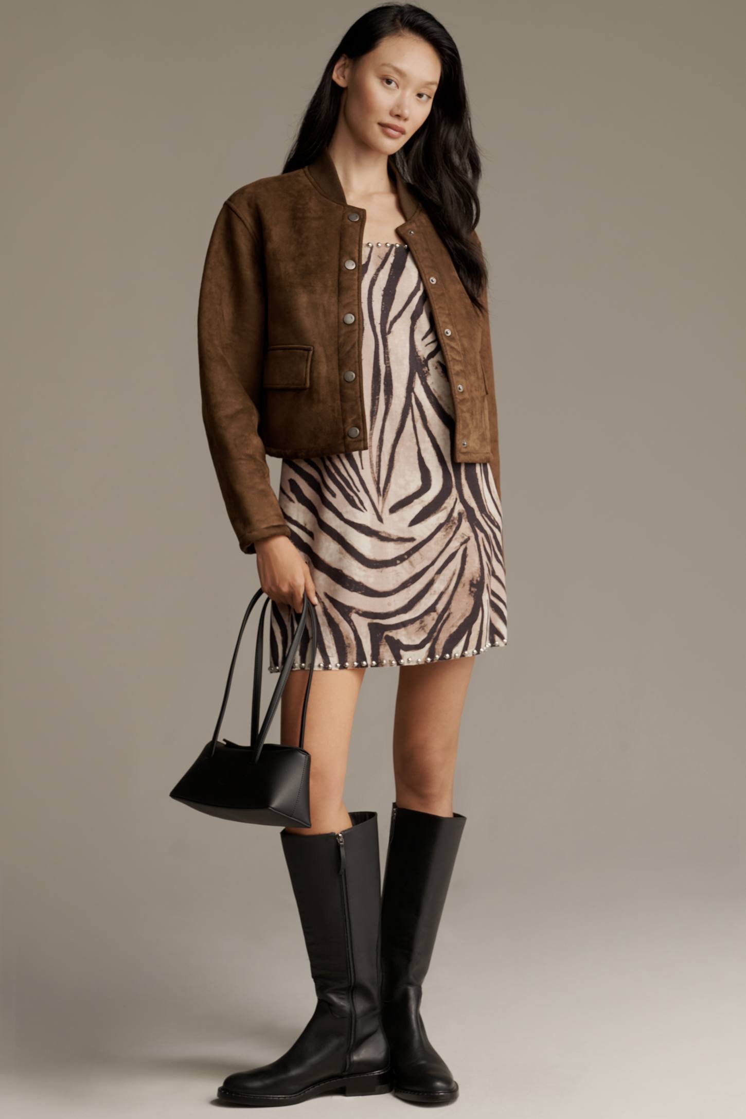 SOHO SHERPA FLEECE-LINED CROP BOMBER JACKET