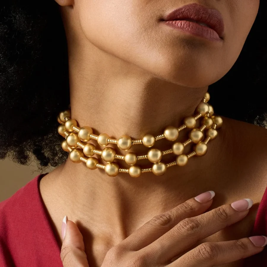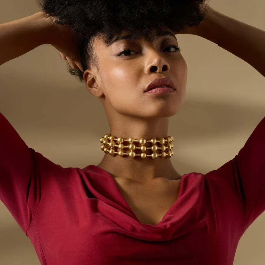 The Solmae Choker exudes quiet power and timeless edge. Crafted in high-shine gold, it hugs the neckline with sculptural poise. A lobster clasp ensures a secure fit, while its reflective surface adds drama to even the simplest outfit. With its clean lines and bold finish, this piece offers modern elegance with unmistakable presence.