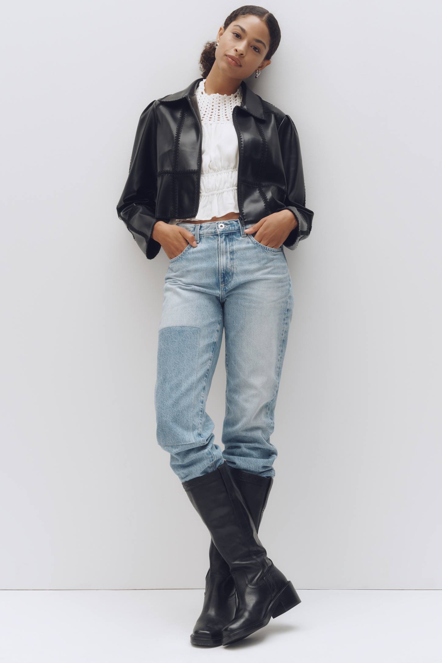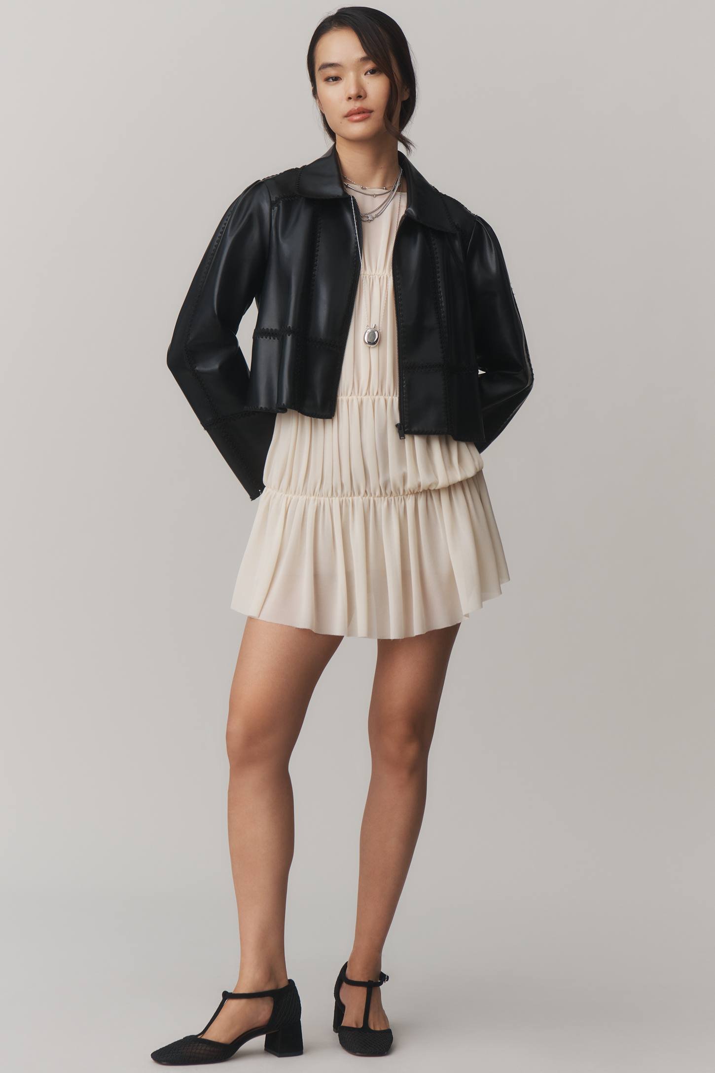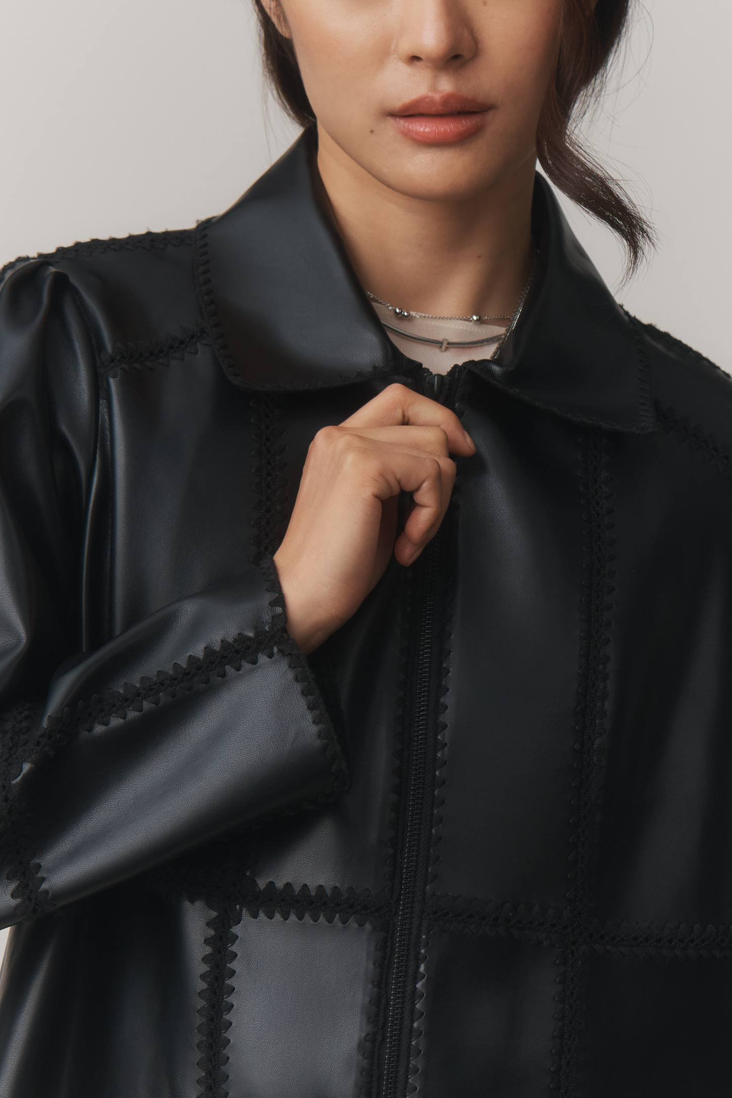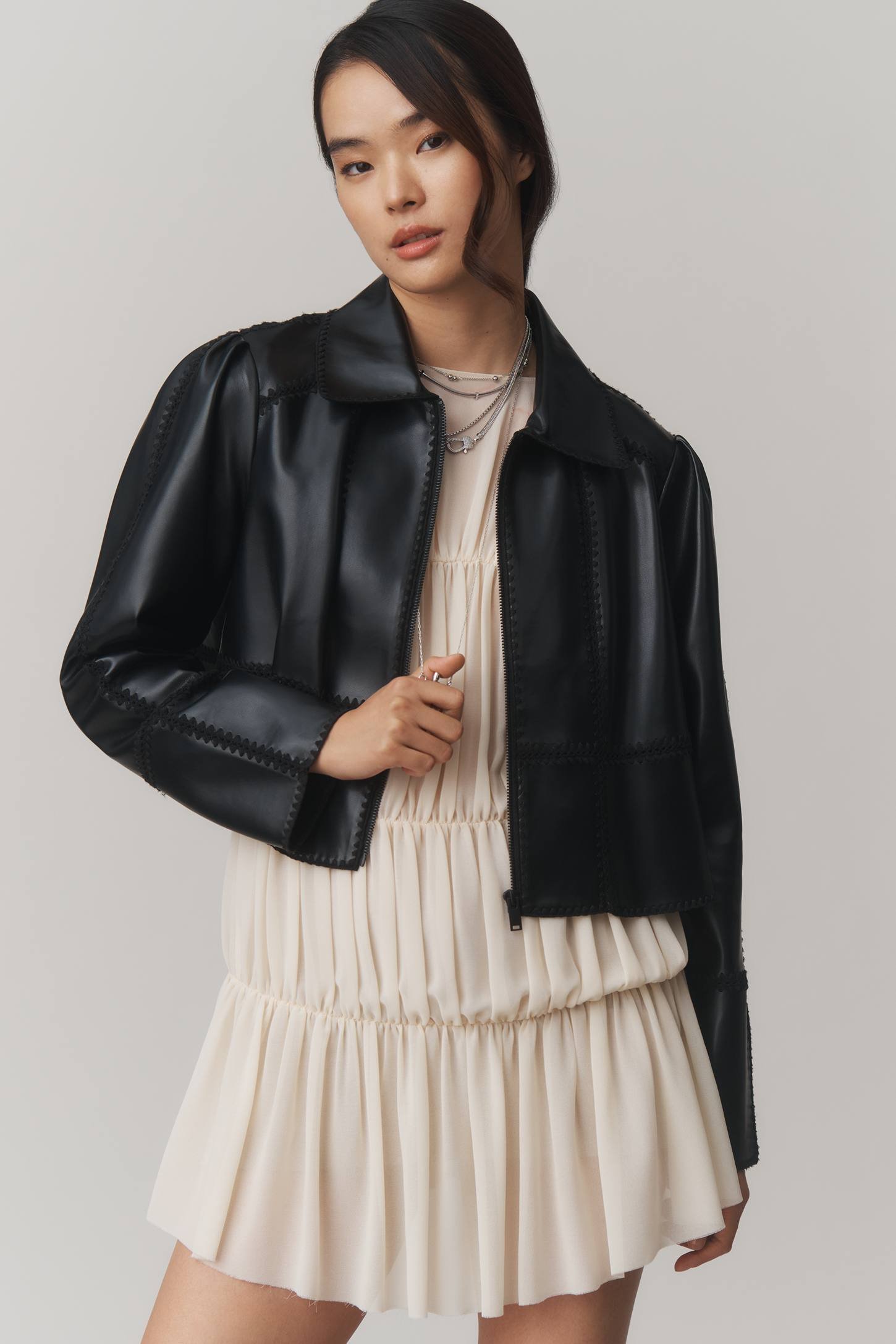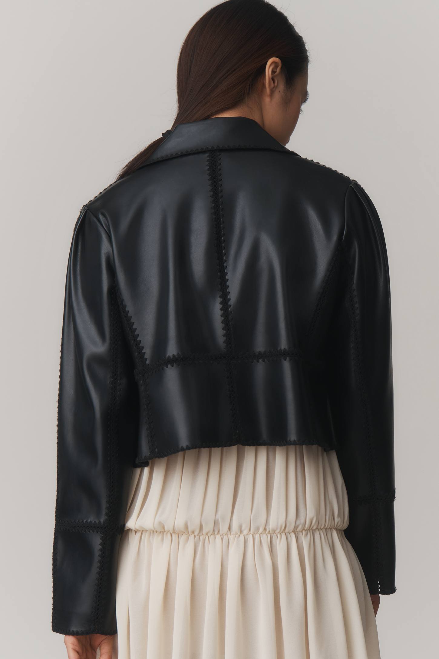 THE FREYA FAUX LEATHER WHIP-STITCH SWING JACKET