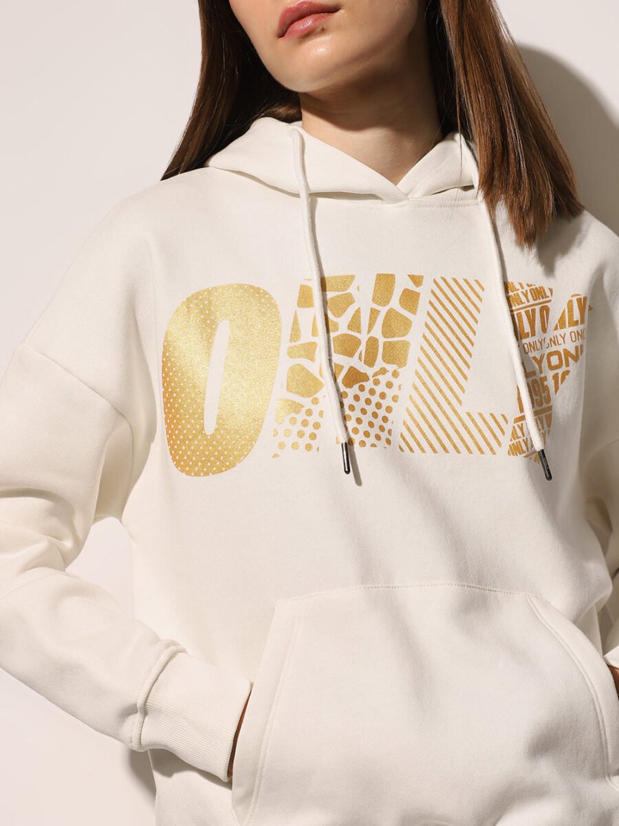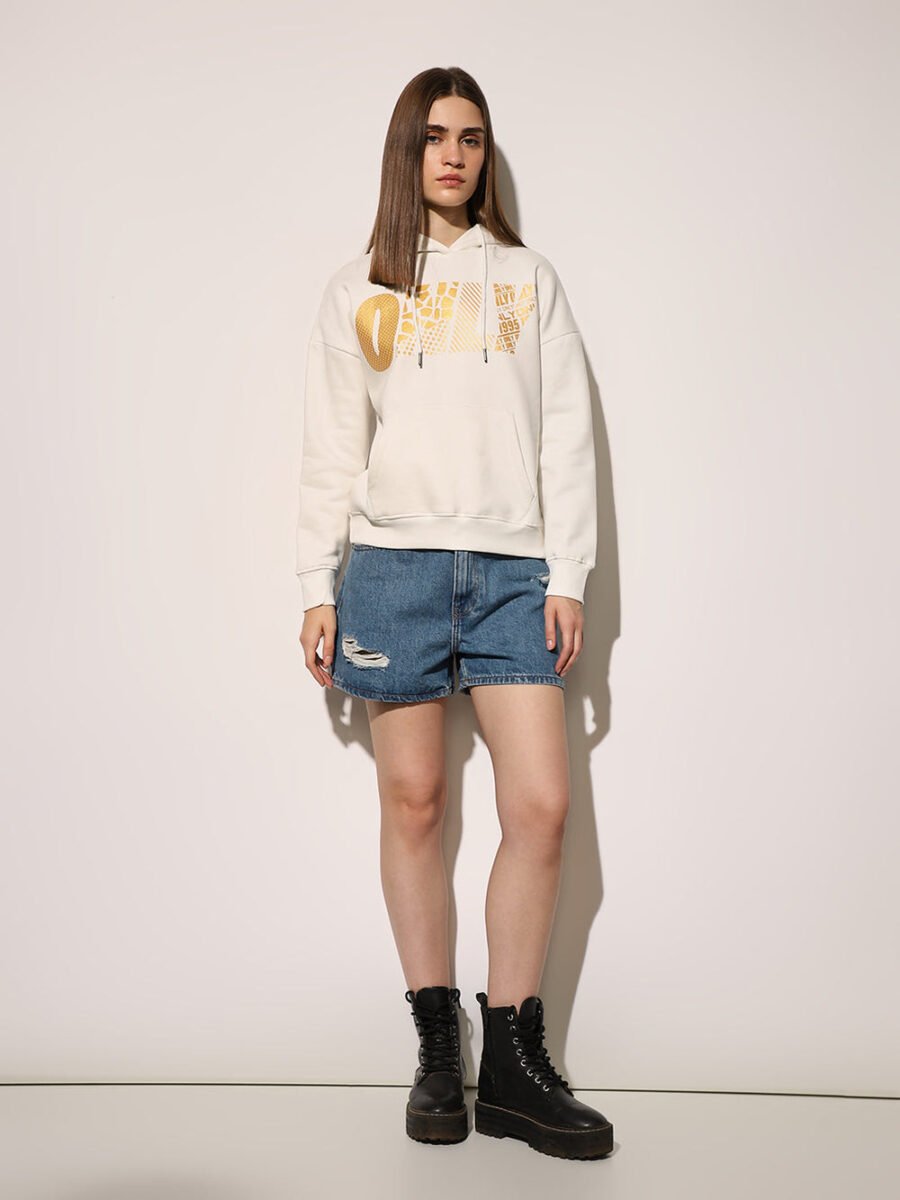 WHITE TYPOGRAPHIC HOODED SWEATSHIRT