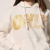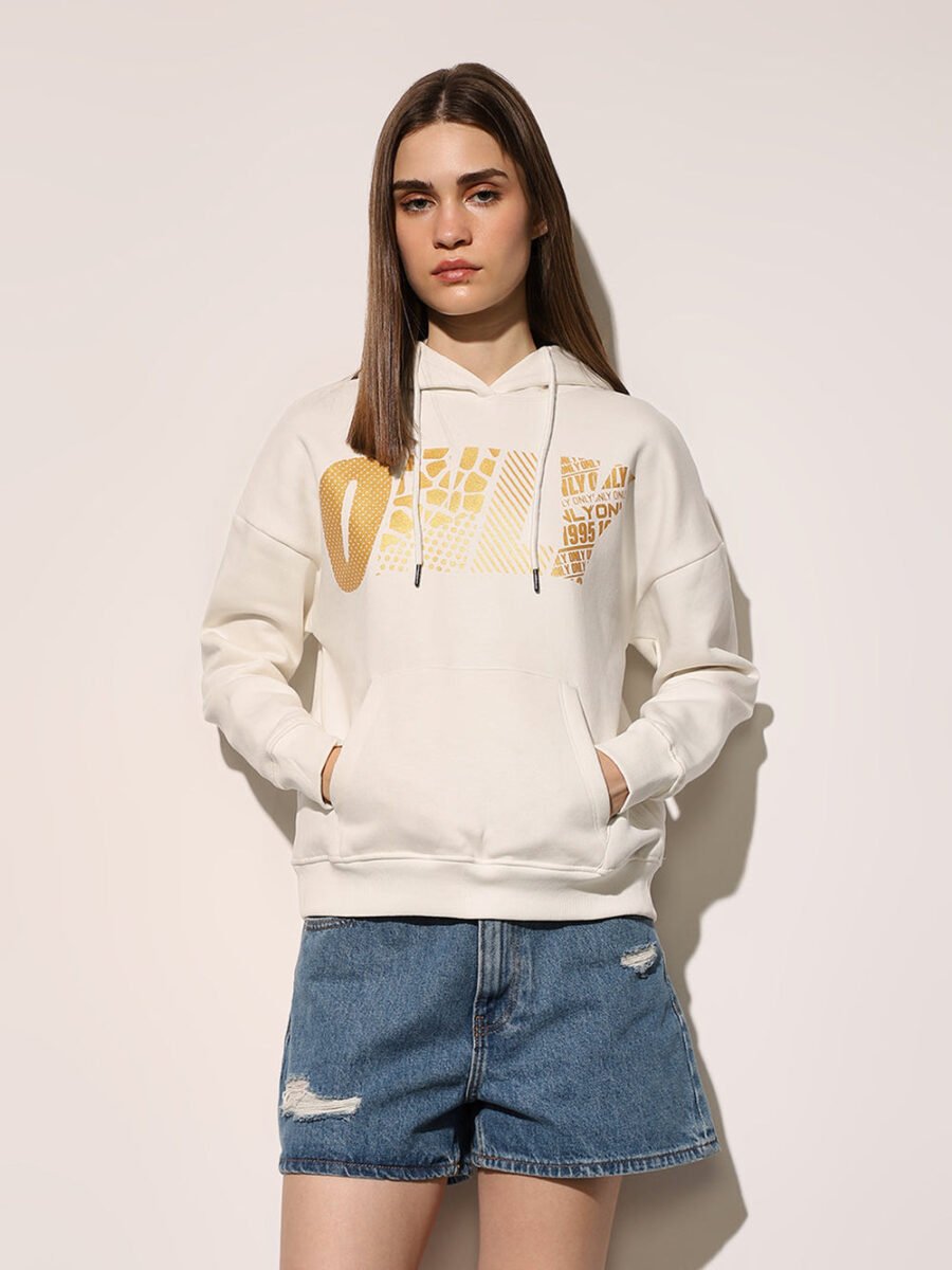 Stay effortlessly cool in this women’s white hoodie from SOHO BOUTIQUE. Made in soft sweatshirt fabric with a brushed inside, it’s all about comfort with a relaxed fit, drawstring hood, and dropped shoulders. Finished with a bold typographic logo and a handy kangaroo pocket—your go-to for chill days.